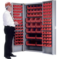 - CB444 Storage Cabinets Red bins38"Wx24"Dx72"H