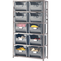 - CF056 Shelving (w/10 GREY plastic bins) 42"Wx18"Dx76"H