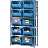 - CF057 Shelving (w/10 BLUE plastic bins) 42"Wx18"Dx76"H